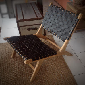 Ref 212.BLACK CHAIR BELLEVUE LAZY BLACK WEAVING LEATHER NATURAL TEAK 63X90X73 |