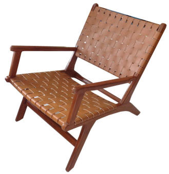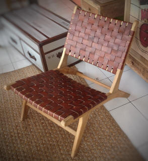 Ref 212.BROWN CHAIR BELLEVUE LAZY BROWN WEAVING LEATHER NATURAL TEAK 63X90X73 |