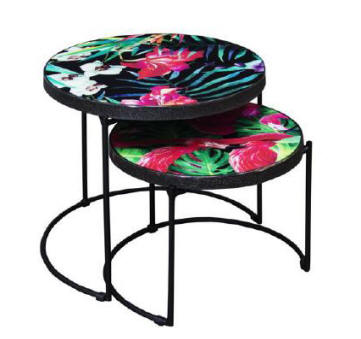 Ref TRO367 TRO GUERIDON ROUND Set2-DIA.50&42CM-STEEL FEET- MOTIF |