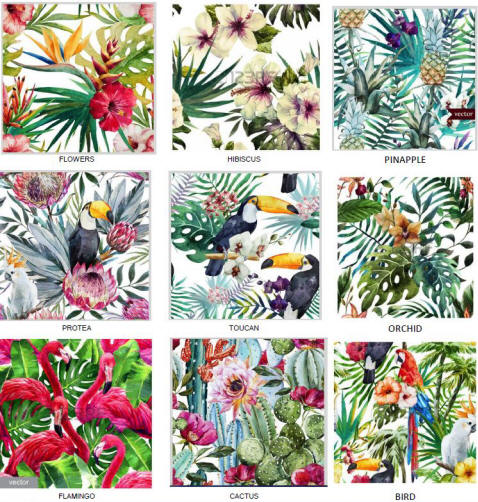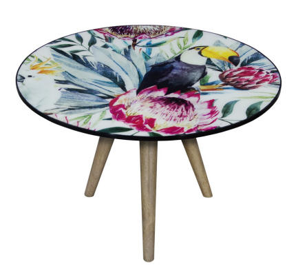 Tropicale motif collection : Mindi wood lightly stained, brushed and tropical motif on resin |