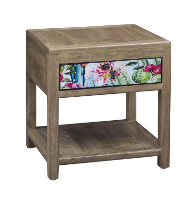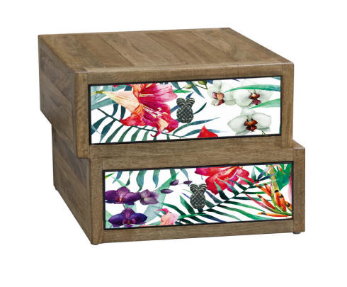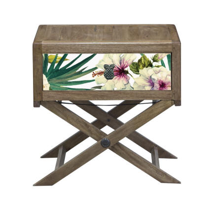 Ref TRO278 TRO BEDSIDE 1 DRW ON STAND MINDI WOOD - MOTIF IBISCUS 45x35x45 |