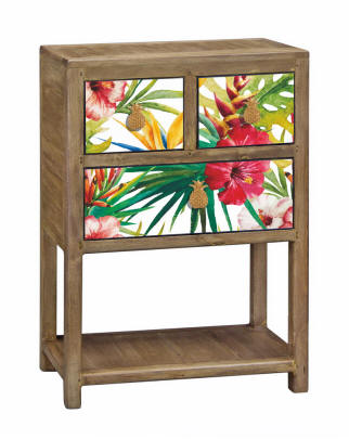 Ref TRO031 TRO SIDE TABLE 3 DRW MINDI WOOD - MOTIF FLOWER 61X32X80 |