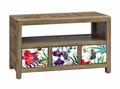 Ref TRO069 TRO BUFFET LOW 3 DRW DVD MINDI WOOD - MOTIF FLOWER 86X40X50 |