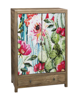 Ref TRO142 TRO ARMOIRE PETITE 2 D 1 DRW MINDI WOOD - MOTIF CACTUS 75x40x110 |