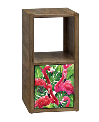 Ref TRO159 TRO SHELF 2 LEVELS 1 DOOR MINDI WOOD - MOTIF FLAMINGO 40X35X81 |