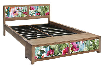 Ref TRO168 TRO BED 160X200 2 DRAWERS MINDI WOOD - MOTIF CACTUS 173x249x100 |