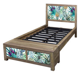Ref TRO193 TRO BED SINGLE 2 DRAWERS 90X190 MINDI WOOD - MOTIF PINAPPLE |