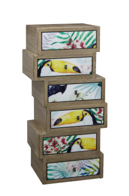 Ref TRO277 TRO SIZAINIER ASYMETRIC 6 DRW MINDI WOOD - MOTIF TOUCAN 60x40x120 |