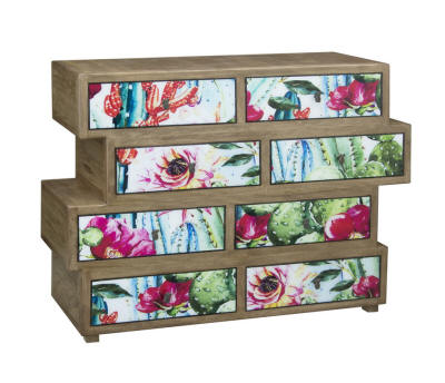 Ref TRO279 TRO CHEST OF 8 DRW ASYMETRIC MINDI WOOD - MOTIF CACTUS 110X45X87 |