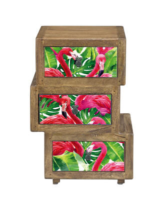 Ref TRO280 TRO BEDSIDE ASYMETRIC 3 DRW MINDI WOOD - MOTIF FLAMINGO 38X40X55 |
